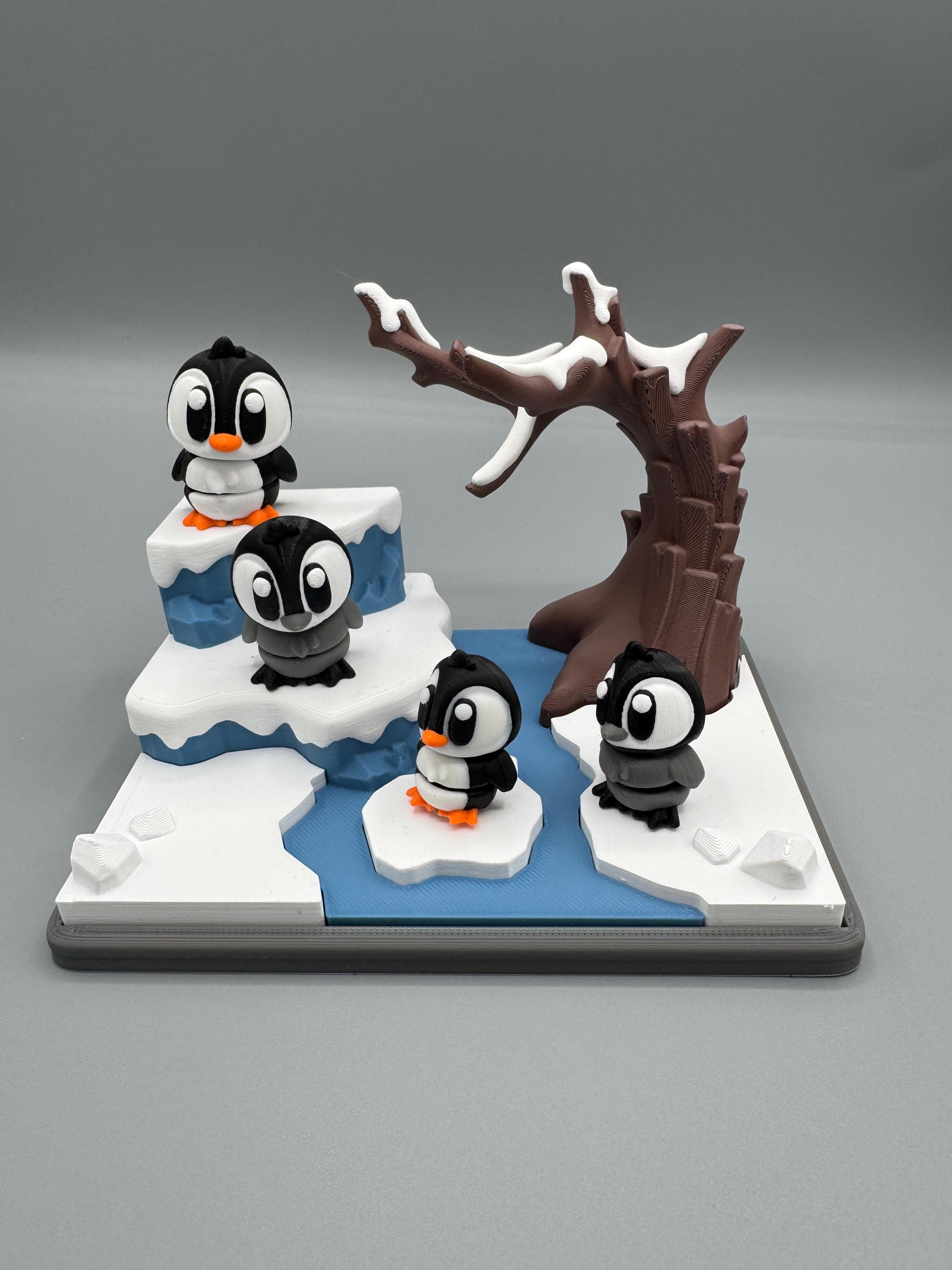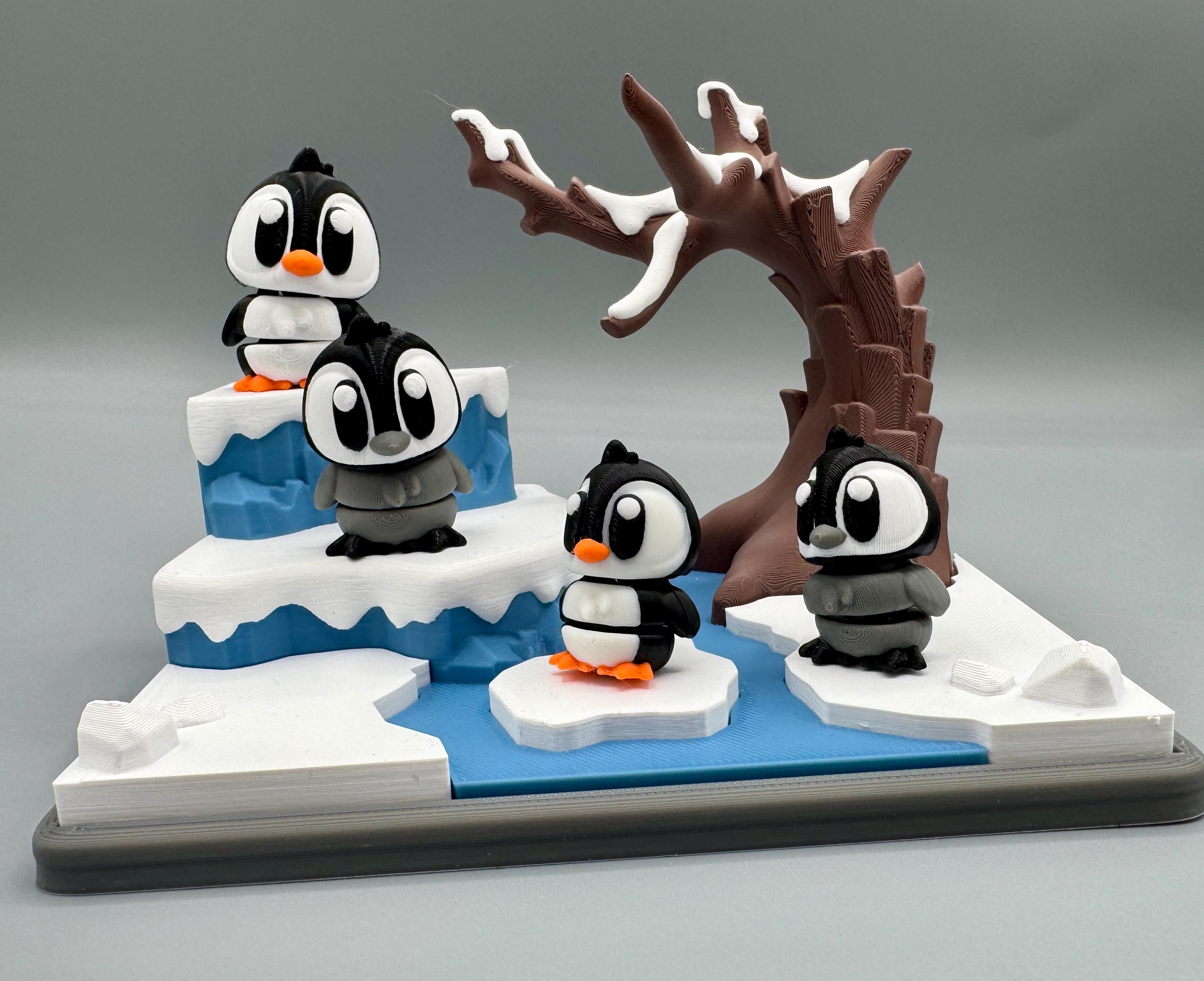 Bring cozy winter charm to your space with this 3D printed Articulated Flexi Penguin & Winter Scene Playset! This adorable miniature scene features four fully articulated flexi penguins and a detailed snowy base—perfect for collectors, penguin lovers, and fans of cute winter décor.